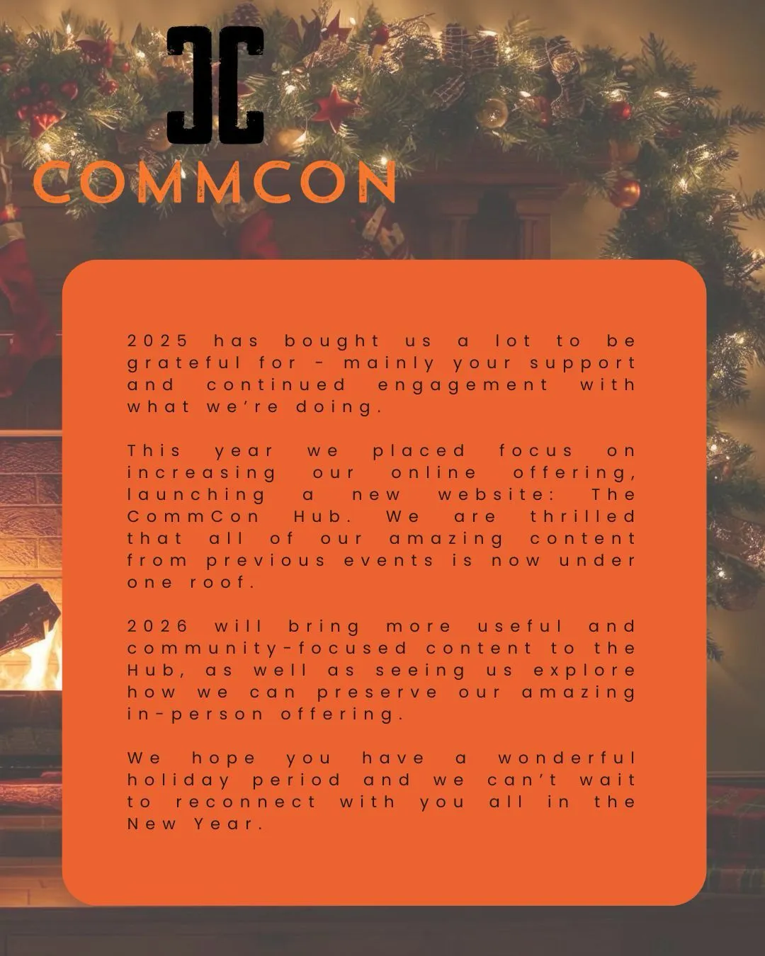 Happy holidays to our entire CommCon community. We hope that Christmas and New Year bring peace and joy. We're excited to reconnect with everyone in 2026!